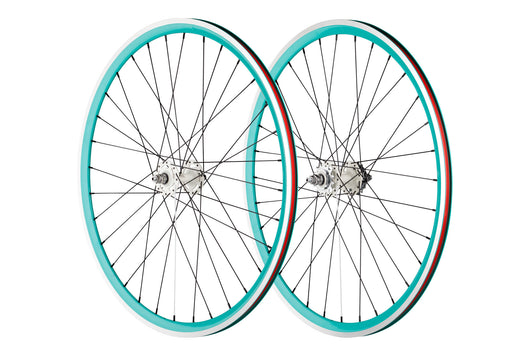 Our rear wheels include flip-flop hubs with a pre-attached 16T fixed cog, along with a 16T freewheel cog for single-speed riding. Front and rear wheels have 32 spokes each and all wheelsets include nylon rim-strips to protect against sharp edges and prevent tube puncture.